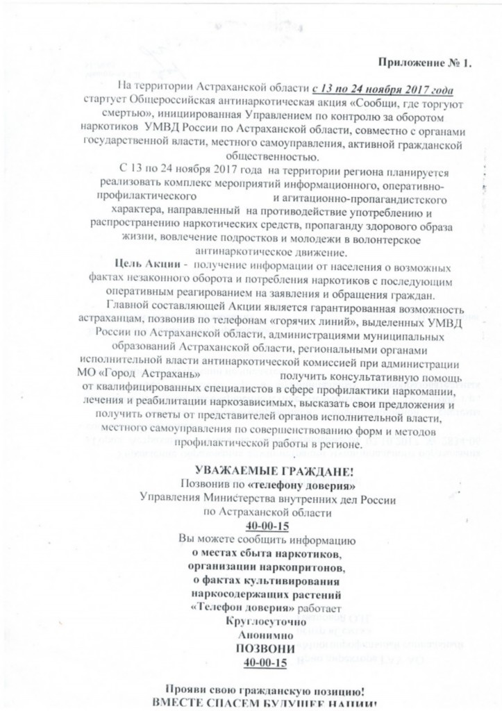 В период с 11 по 22 марта на территории Астраханской области проводится первый этап Общероссийской антинаркотической акции "Сообщи, где торгуют смертью".