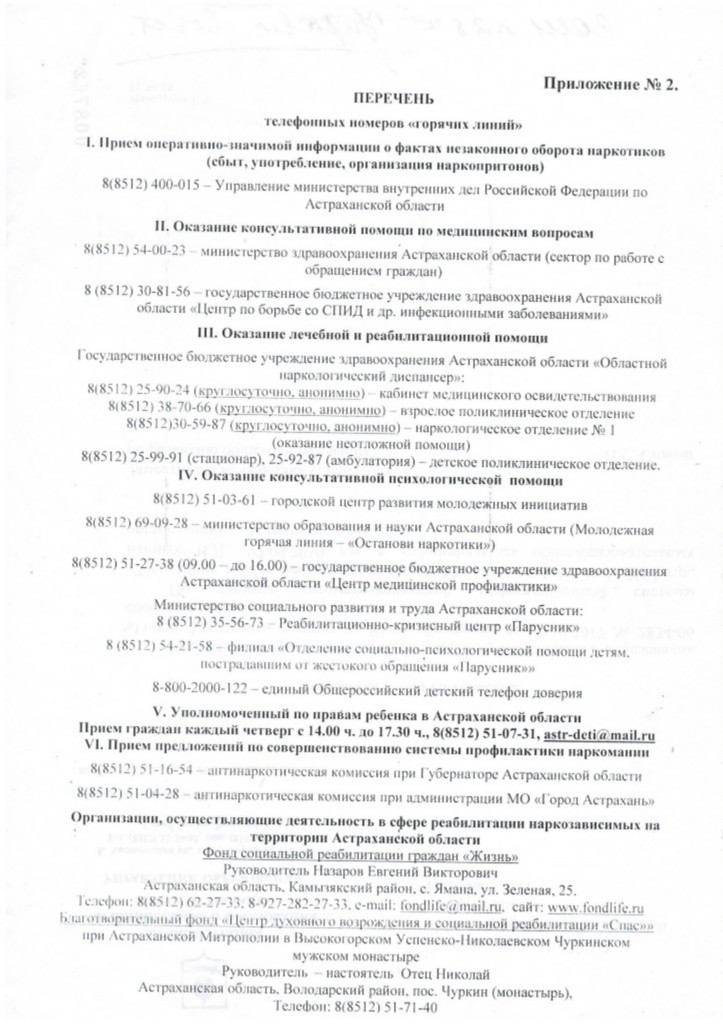 телефонных номеров «горячих линий»,